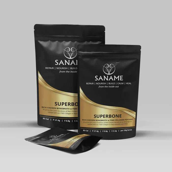 SANAME 'SUPERBONE' chicken bone broth mixes so easy, it is great just with hot water as a simple broth, or can be added to the full rich flavour of minces and stews as the perfect stock base. Breakfast on the run just got easier and a whole lot healthier, Saname Coffee Collagen: 19.8g of protein to help you kick start your busy day! P360 Collagen is a flavourless product that is so neutral it can be added to anything to bulk up the protein content and you won't even taste it! 18 different flavoured hot & cold brew collagens to choose from, along with a selection of 5 flavoured bone broth collagens. Why not kickstart your 2021 and get your Ultimate 1 month Kickstart Variety Taste Pack now! We know you are going to enjoy these absolutely amazing foods, Yes they are essential foods they are not supplements, and they help stimulate your body from the inside out.