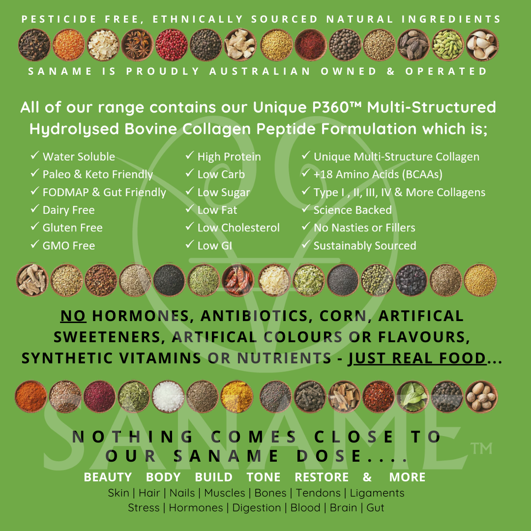 SANAME is an Australian Health Food Business Specialising in Collagen & Bone Broths. Our broad range of Science Backed High Protein Multi-Structured Collagen Hot & Cold Brews, Bone Broths & Soup powders have been specifically developed as Light, High Protein, Low Carb, Nourishing Meals to assist with maintaining optimum health, fitness, vitality & well-being.